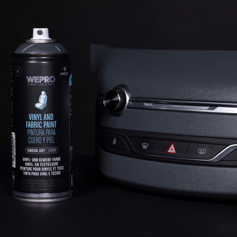 Revive interiors with MTN PRO Vinyl & Fabric Paint Charcoal Grey 400ml > > a deep, modern charcoal grey that delivers a sleek, factory-fresh look on high-wear surfaces. This solvent-based, highly flexible aerosol bonds permanently to vinyl, leather, faux leather, fabric, Alcantara, suede, plastic trim, door cards, seats, dashboards, headliners, parcel shelves, centre consoles, gear gaiters and many synthetic materials.